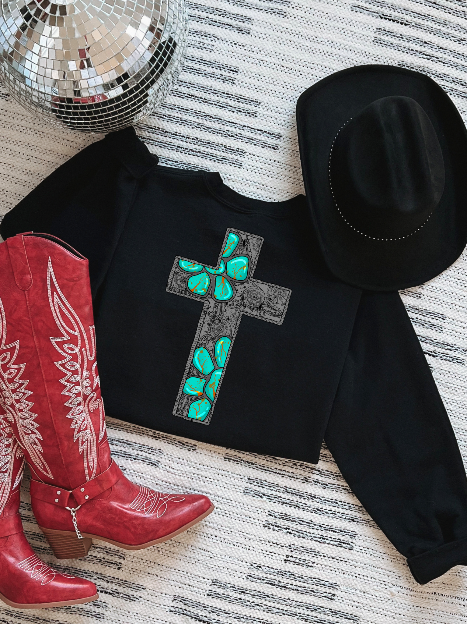 Turquoise Cross Crewneck